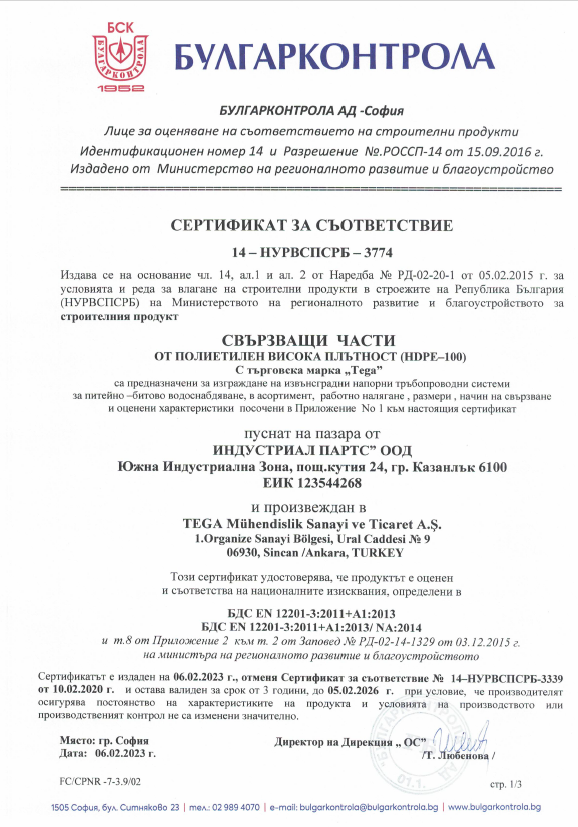 | EN 1555- 4 | Plastics Piping Systems for the Supply of Gaseous Fuels – Polyethylene (PE) | |
