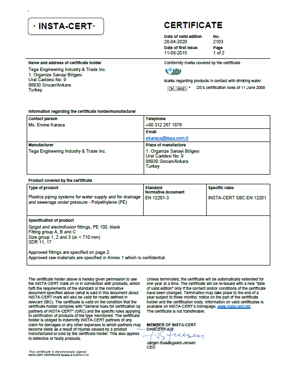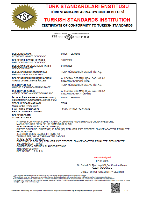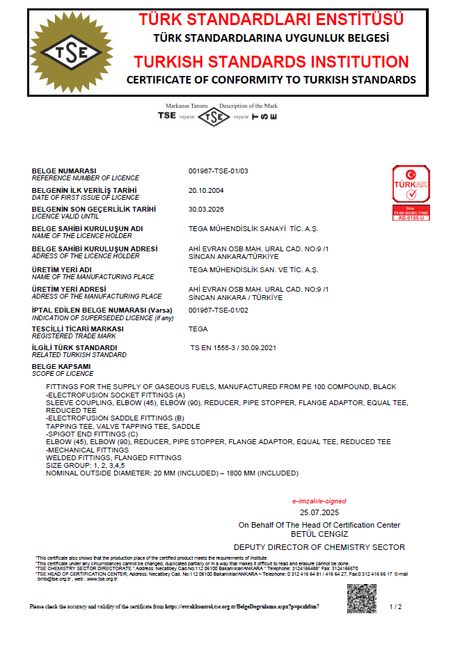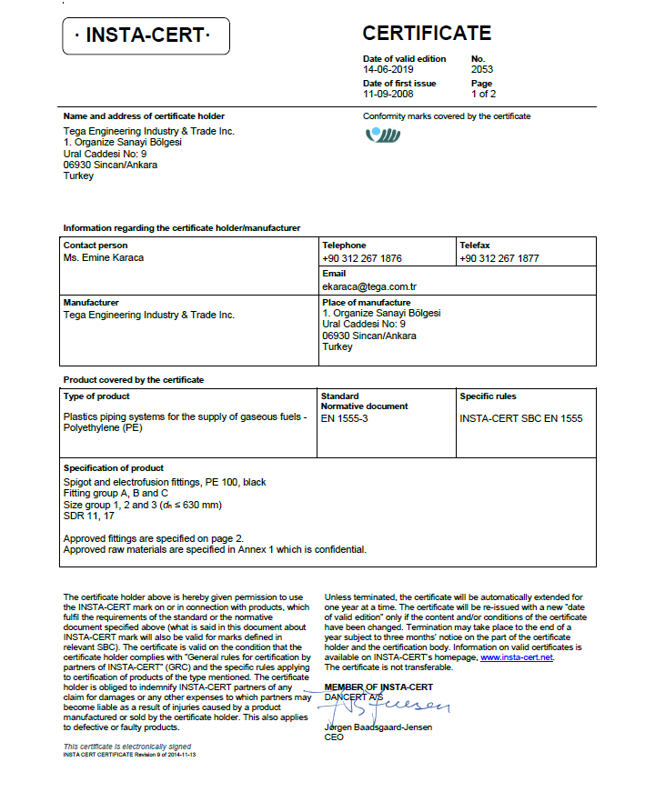| EN 1555 -3 | Plastics Piping Systems for the Supply of Gaseous Fuels – Polyethylene (PE) | |