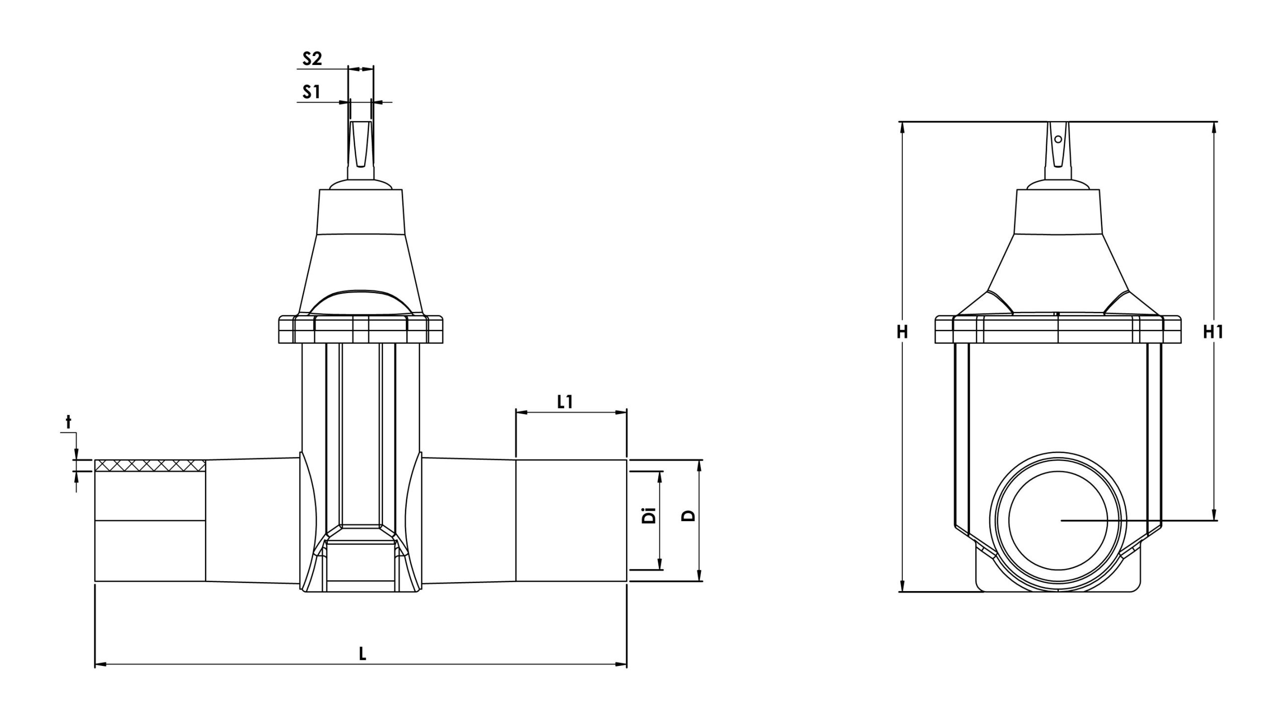 Code (316 SS+DZR) D Di L L1 H H1 t S1 S2