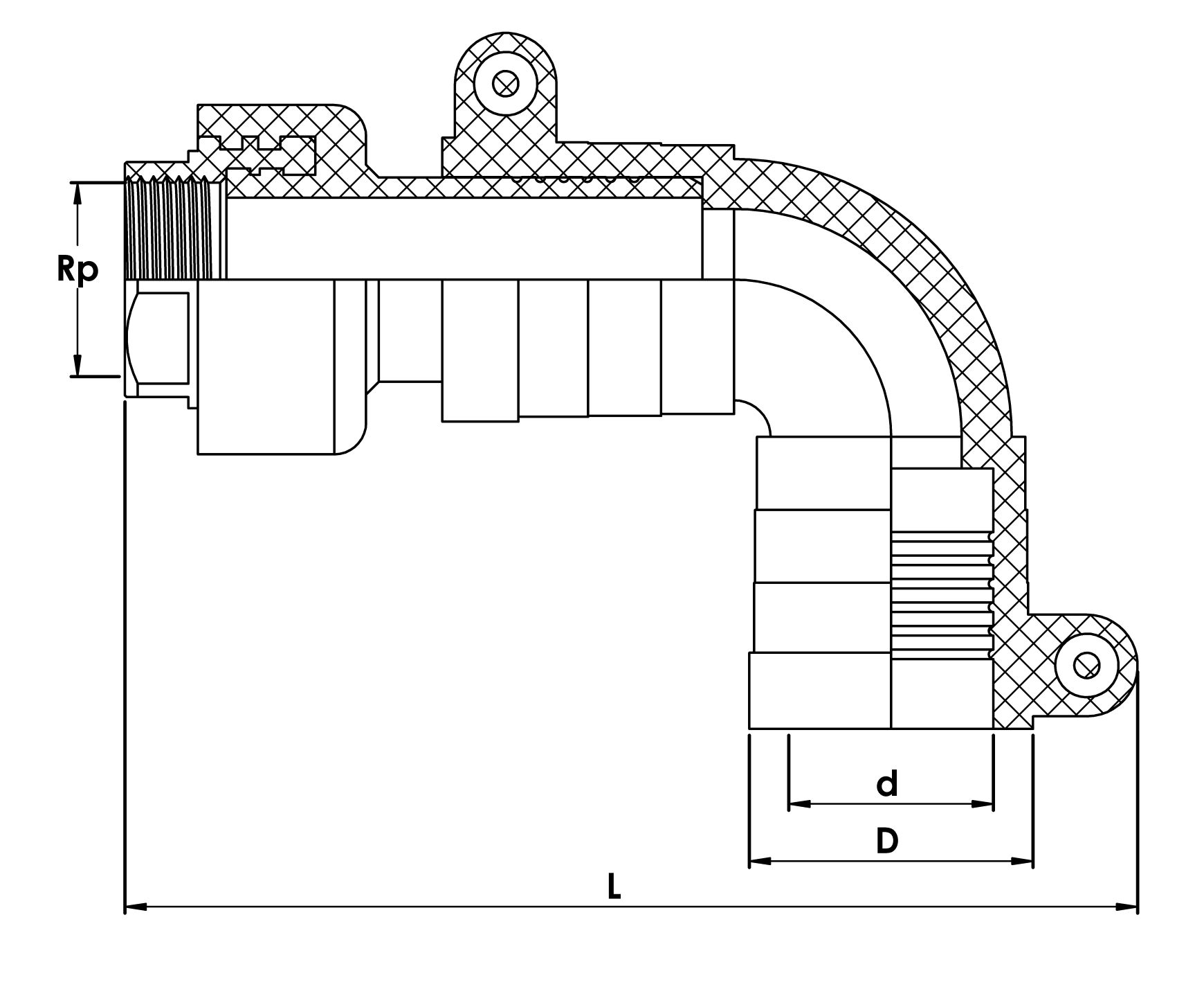 ELEKTROFÜZYON PE-PİRİNÇ GEÇİŞ DİRSEĞİ 90° (DİŞİ) SDR 11 PE100-RC