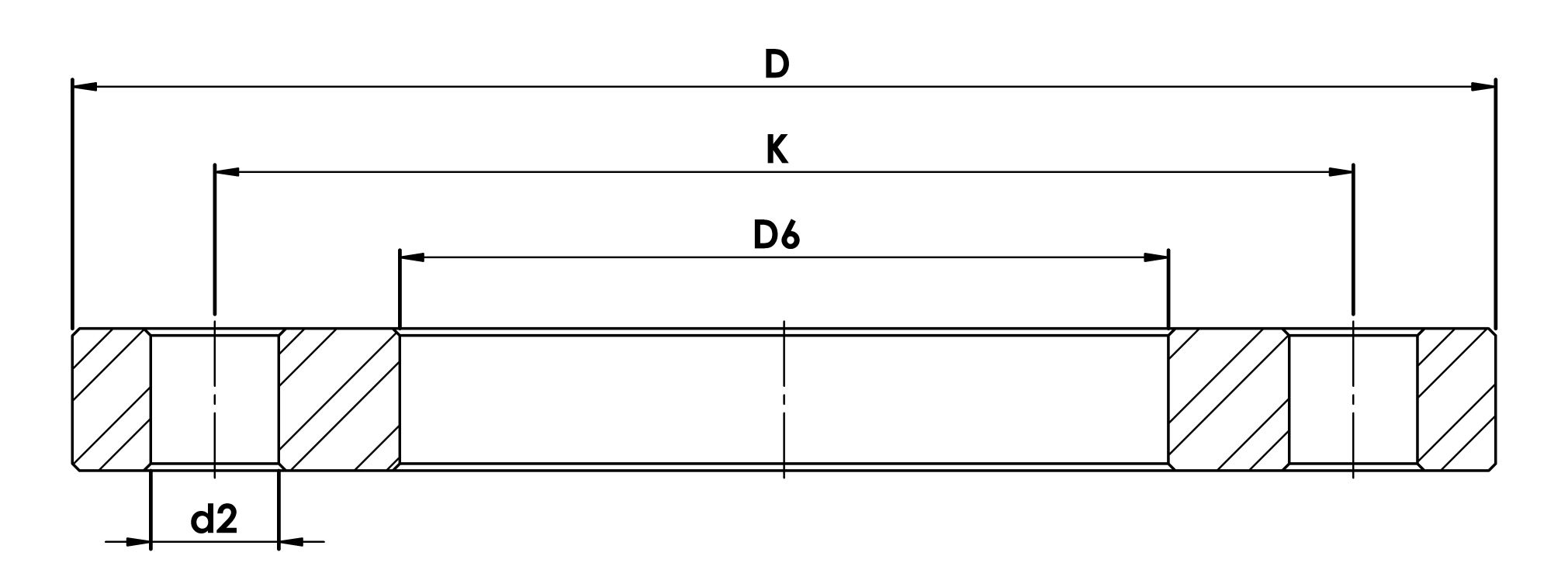 D6 (mm) | K (mm) | D (mm) | d2 (mm) | Adet (n) | kg |